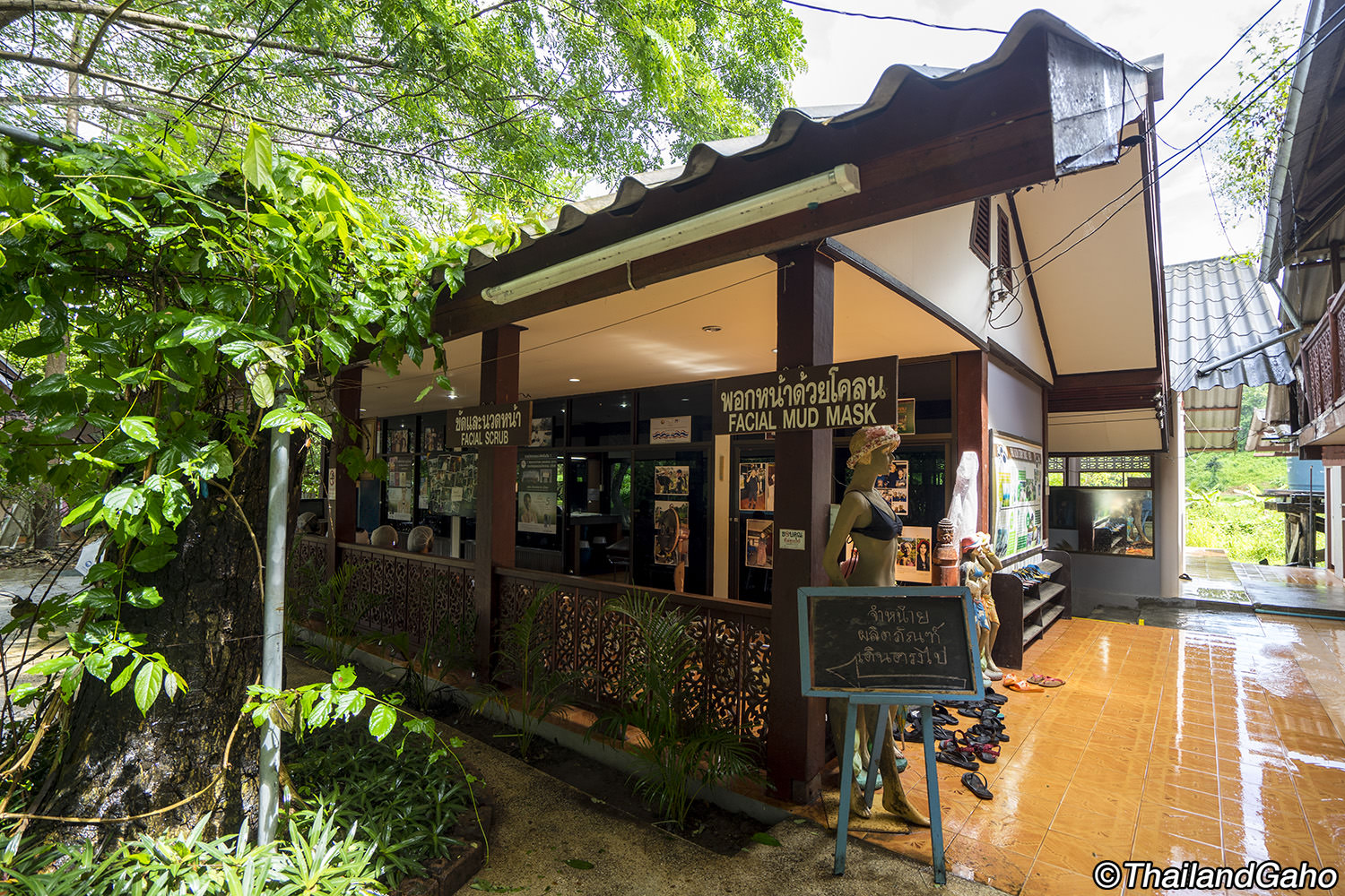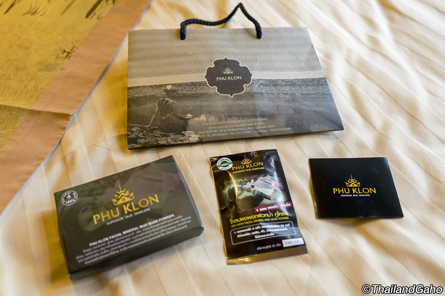 プークロンでは、オリジナルのホームスパプロダクツも開発しています。泥の成分を配合した泥パックをはじめ、石けん、美容液、シャンプーなど、品揃えも豊富で、パッケージもしっかりしています。バンコクでは見かけたことはありませんでしたが、ウェブサイトを見ると通信販売でも買えるようです。 私は、家庭用泥パックをお土産に買って帰りました。3袋セットで350バーツ(約1200円)。ヨーグルトに混ぜて顔にパックします。一回ごとに使い切りなのが便利なのと、小分けにしてお土産にもいいかなと思います。あとは、泥パックの後で顔に塗ってもらった、泥成分配合のアロエジェルも、香りがよく、使い心地もさっぱりして気持ちよかったです。こちらは1290バーツ(約4300円)でした。